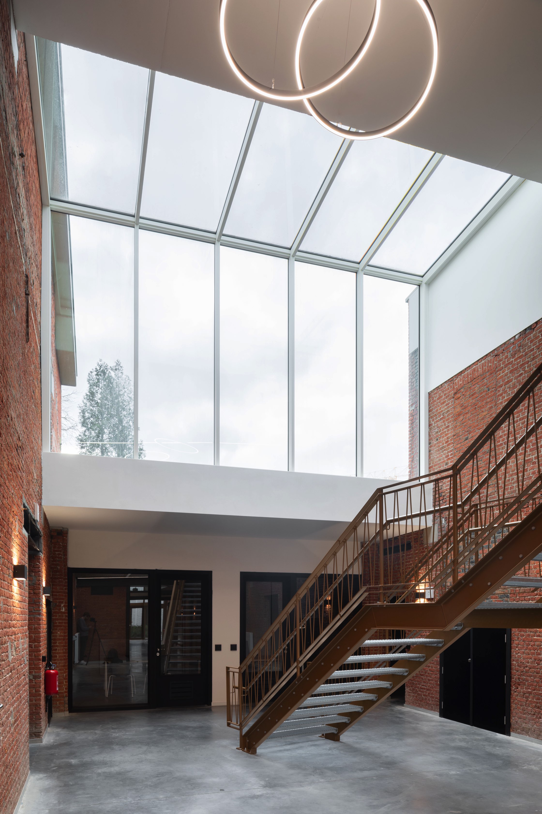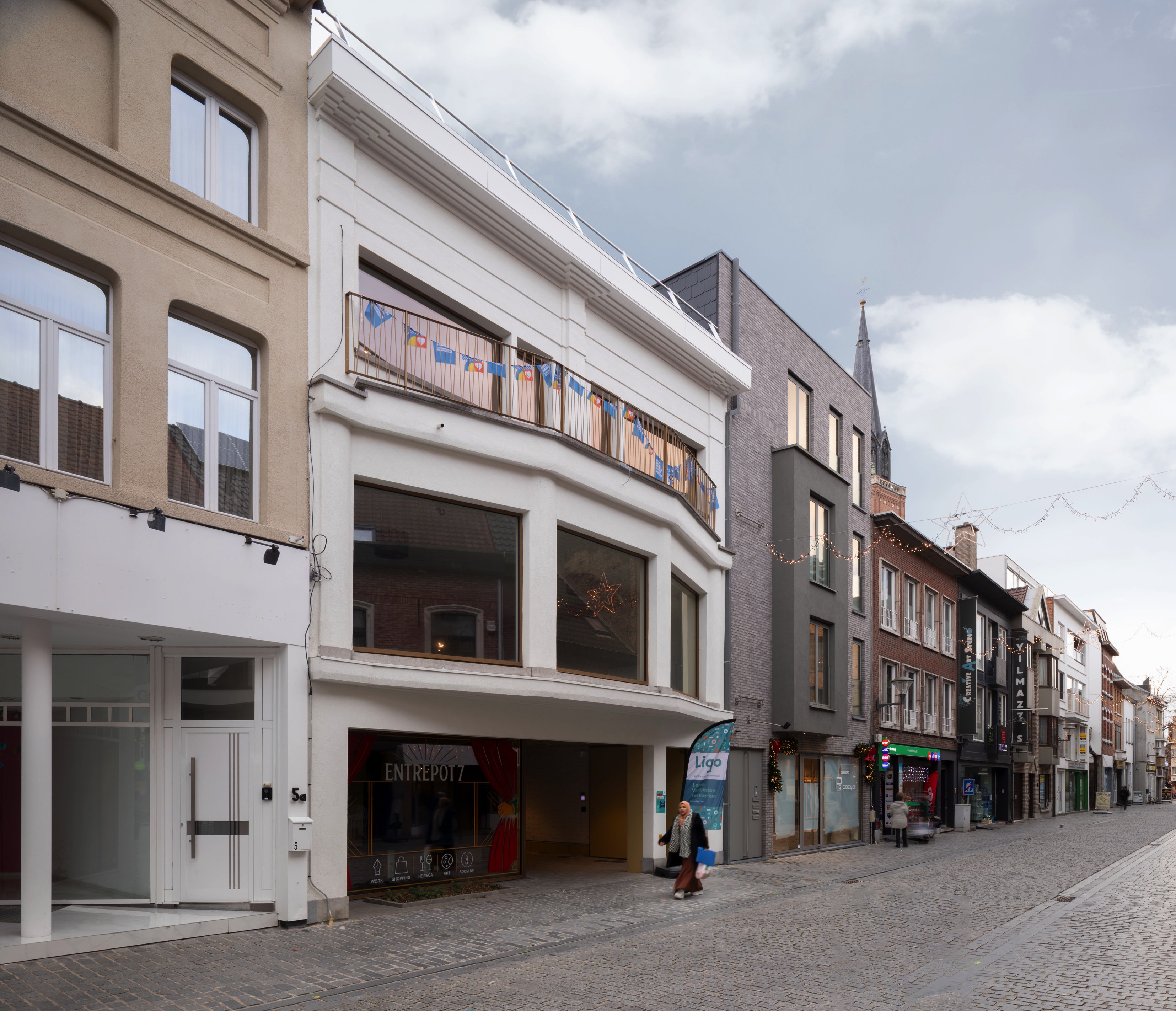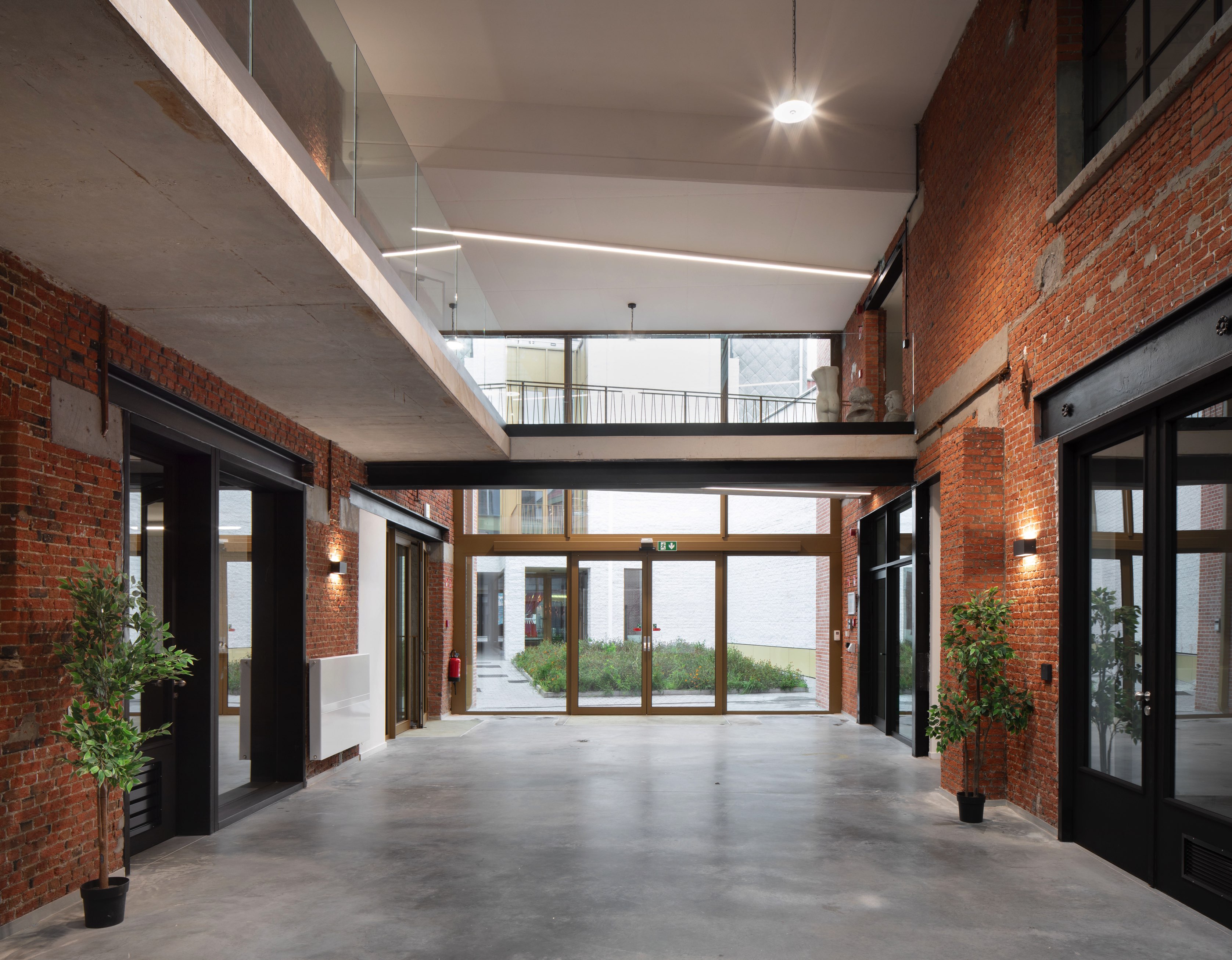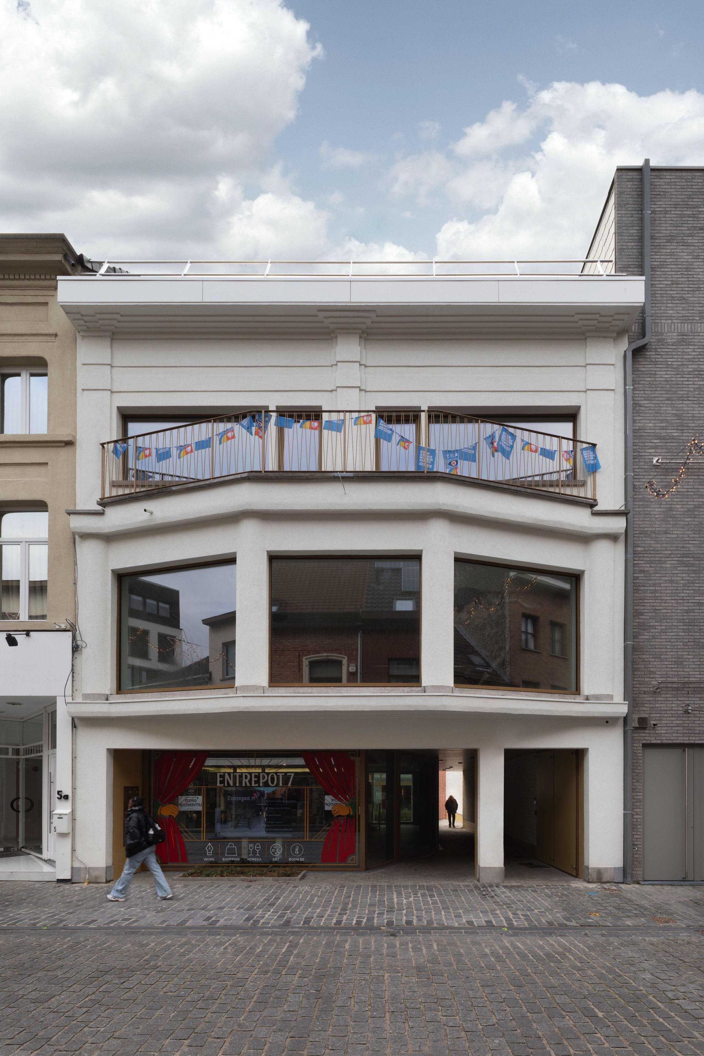 Een oud winkelpand met pakhuis in de dorpskern van Boom dient herbestemd te worden tot multifunctioneel centrum waarin onder andere kunstateliers, handelsruimtes en horeca onderdak kunnen krijgen. Ondanks de slechte staat van het bestaande gebouw en de wildgroei aan aanbouwsels zagen wij het potentieel om het pakhuis in ere te herstellen en het charmante industriële karakter opnieuw leven in te blazen. Met het wegnemen van een substantiëel volume centraal op het volledig dichtbebouwde perceel wordt licht en lucht aan het project gegeven. Een groene binnenkoer splits het project in 2 delen op en creëert een rust- en herkenningspunt. Dankzij een laagdrempelige, publieke doorgang doorheen de voorbouw en een connectie met de achter het project gelegen parochietuin wordt een nieuwe verbindingsas gelegd tussen de winkelstraat en de kaai langsheen de Rupel. Als ambitie wordt gestreefd naar het realiseren van een nieuwe ontmoetingsplek voor de Boomenaren!