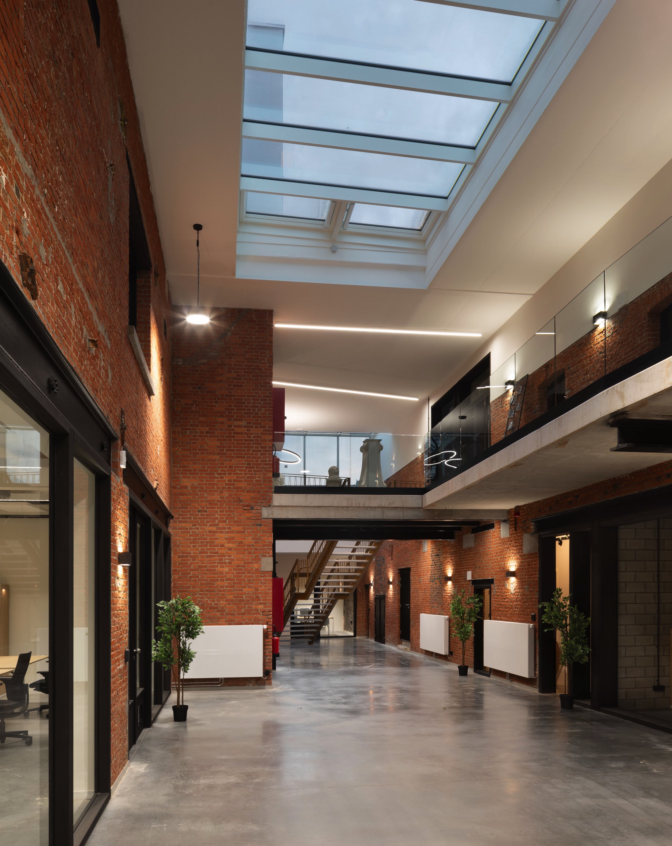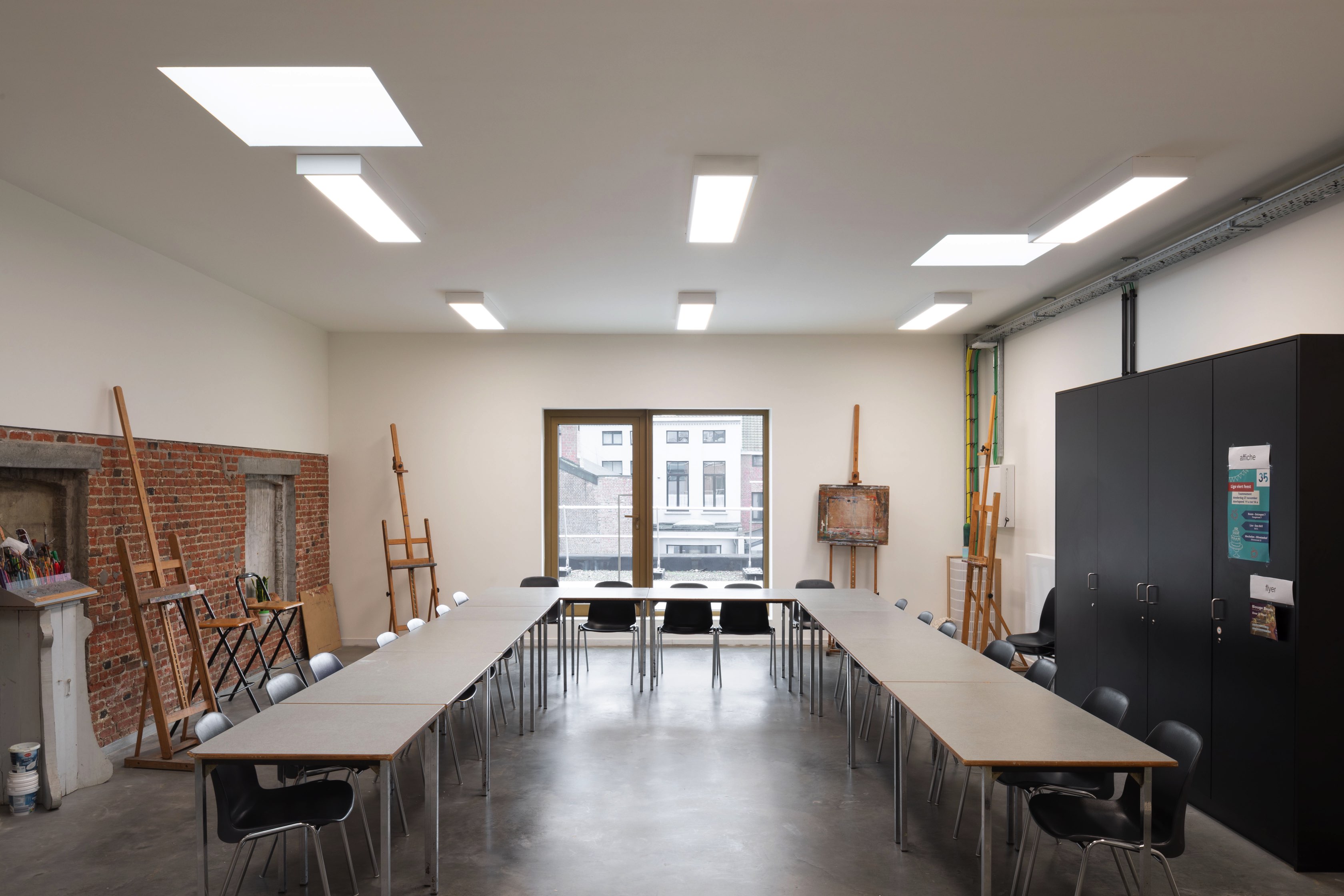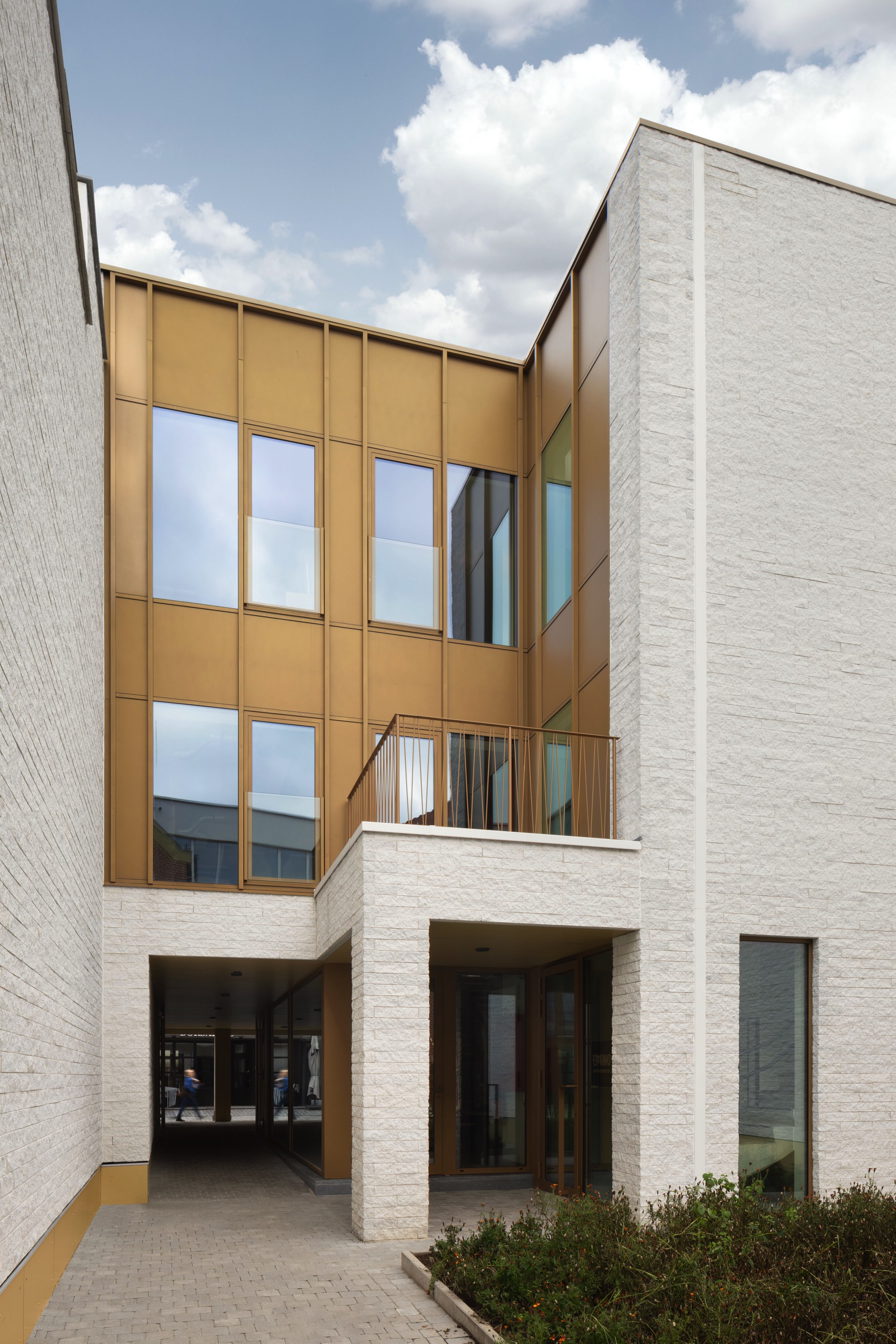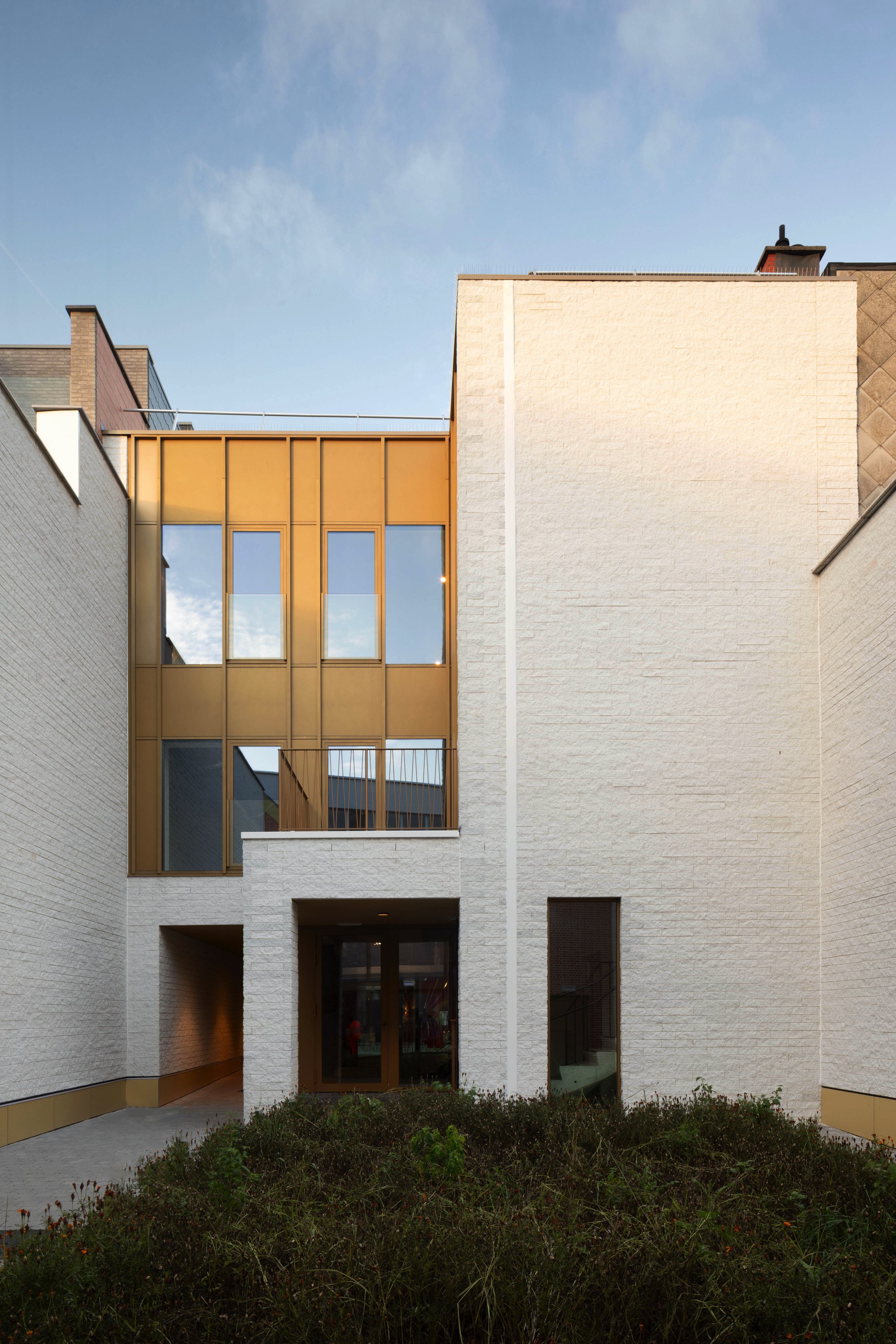 Een oud winkelpand met pakhuis in de dorpskern van Boom dient herbestemd te worden tot multifunctioneel centrum waarin onder andere kunstateliers, handelsruimtes en horeca onderdak kunnen krijgen. Ondanks de slechte staat van het bestaande gebouw en de wildgroei aan aanbouwsels zagen wij het potentieel om het pakhuis in ere te herstellen en het charmante industriële karakter opnieuw leven in te blazen. Met het wegnemen van een substantiëel volume centraal op het volledig dichtbebouwde perceel wordt licht en lucht aan het project gegeven. Een groene binnenkoer splits het project in 2 delen op en creëert een rust- en herkenningspunt. Dankzij een laagdrempelige, publieke doorgang doorheen de voorbouw en een connectie met de achter het project gelegen parochietuin wordt een nieuwe verbindingsas gelegd tussen de winkelstraat en de kaai langsheen de Rupel. Als ambitie wordt gestreefd naar het realiseren van een nieuwe ontmoetingsplek voor de Boomenaren!